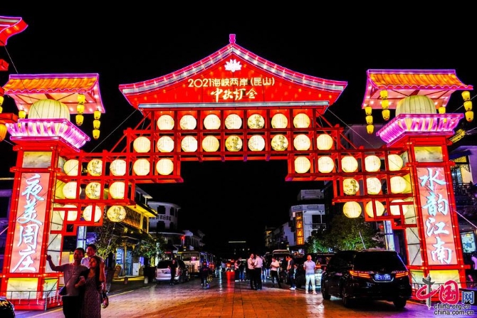 9月16日晚,由國務院臺灣事務辦公室指導,江蘇省人民政府臺灣事務辦公室、中華文化聯(lián)誼會和臺灣中華兩岸交流協(xié)會全程支持,昆山市人民政府主辦的2021“花開并蒂·燈映兩岸”主題海峽兩岸(昆山)中秋燈會啟幕,周莊燈區(qū)和昆山開發(fā)區(qū)慧聚廣場燈區(qū)同步點亮。