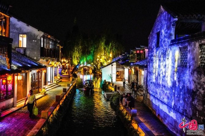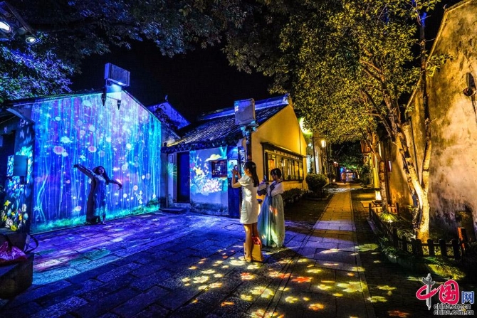 據(jù)介紹,周莊燈區(qū)以水鄉(xiāng)、古鎮(zhèn)、田園江南格局為依托,通過傳統(tǒng)彩燈、數(shù)字科技與現(xiàn)代光影創(chuàng)新應用,豐富夜間場景沉浸式體驗,扮靚“夜周莊”,重點打造水鄉(xiāng)古鎮(zhèn)、臺灣老街、香村·祁莊三個主題片區(qū),近百組燈組將點亮周莊唯美炫彩之夜。水鄉(xiāng)古鎮(zhèn)片區(qū)以“水韻江南,夜美周莊”為主題,“綠色長三角、最美錦淀周”彩燈長卷勾勒昆山對接融入長三角和錦淀周一體化發(fā)展藍圖;“百年輝煌”主題彩燈,慶祝黨的百年華誕;“昆山之路”燈組展現(xiàn)昆山高質(zhì)量發(fā)展成果和建設現(xiàn)代化標桿城市的宏偉藍圖;全福路創(chuàng)意融合文創(chuàng)集市、傳統(tǒng)彩燈、光影打造景區(qū)入口休閑廣場;南湖灣“花好月圓”主題燈組,寓意兩岸寄月相思、祈盼夢圓的美好愿望。魚池岸、全福南路和怪樓廣場 “漁之樂”等主題數(shù)字光影打卡場景,升級提檔夜周莊賞玩體驗。