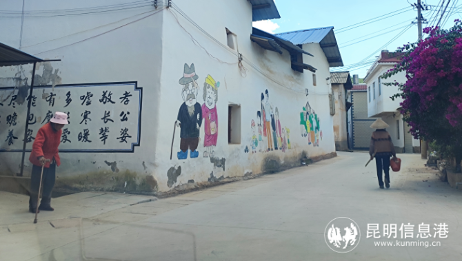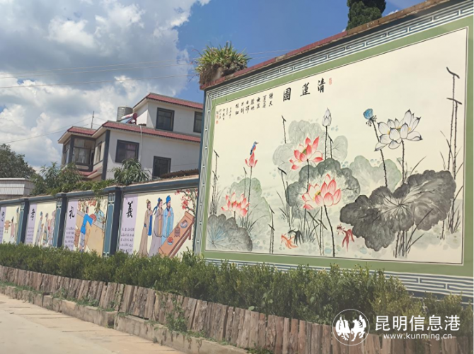 據(jù)大莊村民小組書記金亮介紹,為推進(jìn)美麗鄉(xiāng)村、鄉(xiāng)村振興建設(shè),2009年至今,大莊村民小組結(jié)合連年獲得的云南省級(jí)衛(wèi)生村,昆明市級(jí)生態(tài)村,安寧市文明村等20多項(xiàng)榮譽(yù)稱號(hào),陸續(xù)在村莊的空白墻面上做起“文章”。在主干道沿線的墻面上,做了反映社會(huì)主義核心價(jià)值觀、美麗鄉(xiāng)村、和諧社會(huì)、新時(shí)代文明實(shí)踐、鄉(xiāng)村振興等為主題的彩繪,目前彩繪作品已達(dá)近百幅上千平方米。一幅幅生動(dòng)、易懂的畫面,感染著每一位過往的村民,也描繪出大家協(xié)同一心共建美麗鄉(xiāng)村的熱情,以及對美麗新農(nóng)村的無限憧憬。