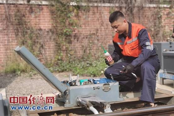 電務(wù)人員維修道岔轉(zhuǎn)轍機。中國經(jīng)濟網(wǎng)記者佟明彪/攝