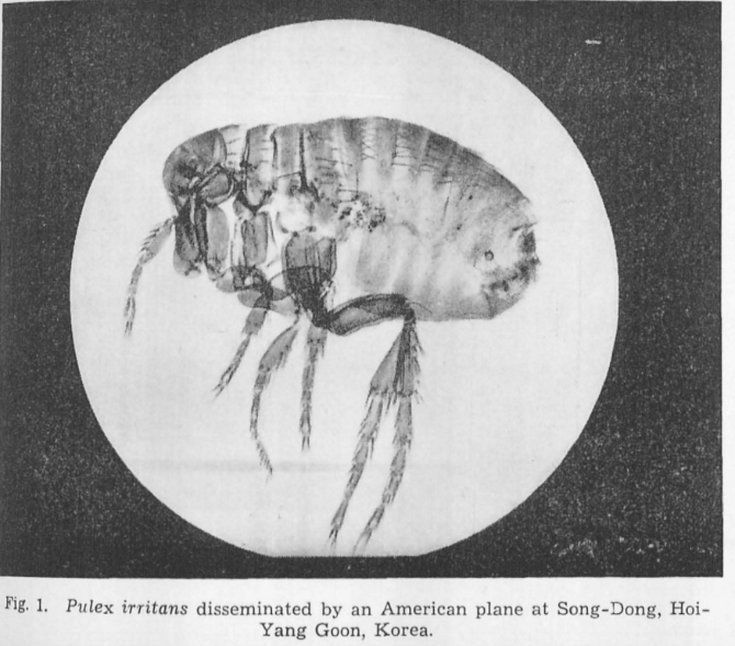 國際科學委員會報告中的插圖,公布了美國在朝鮮投放的人蚤。圖片來自倫敦帝國戰(zhàn)爭博物館保存的國際科學委員會報告