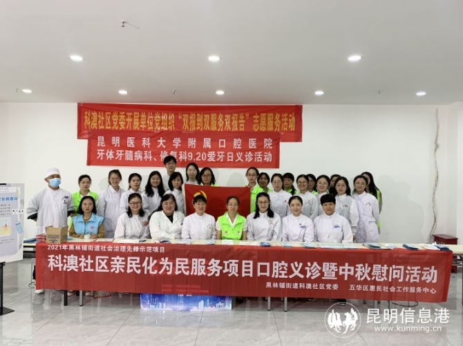 昆明信息港訊 記者昝娟娟 9月20日是我國第33個“全國愛牙日”,為提高社區(qū)居民口腔保健意識及對口腔健康的關(guān)注程度和能力;進(jìn)一步普及口腔衛(wèi)生知識,強(qiáng)化公眾對口腔衛(wèi)生的關(guān)注,科澳社區(qū)黨委于9月17日在科澳社區(qū)黨群服務(wù)中心大廳開展單位黨組織“雙報到雙服務(wù)雙報告”愛牙日口腔保健義診志愿服務(wù)活動。
