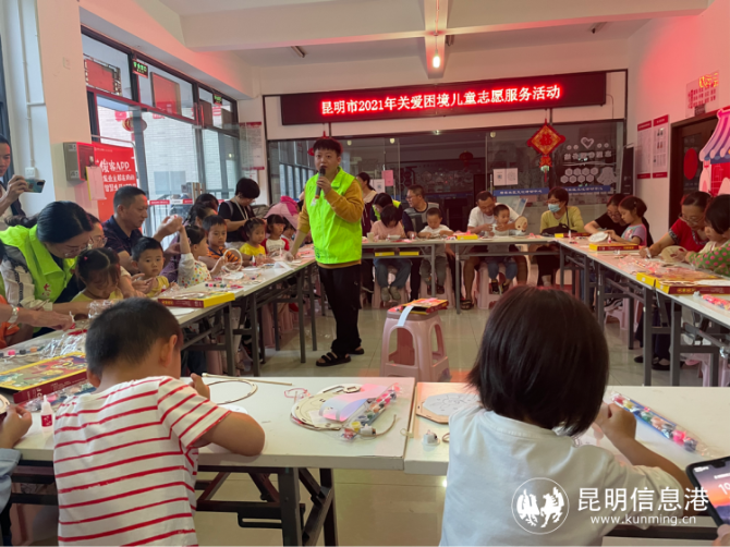 昆明信息港訊 記者張敏 實(shí)習(xí)記者王羽芊 通訊員楊謹(jǐn)語 為進(jìn)一步加強(qiáng)困境兒童關(guān)愛保護(hù)工作,使孩子們健康快樂成長,9月18日晚,昆明市民政局聯(lián)合昆明市青年志愿者協(xié)會,在呈貢碧譚社區(qū)開展“迎中秋 慶國慶”關(guān)愛困境兒童志愿服務(wù)活動,20余名困境兒童參加活動。