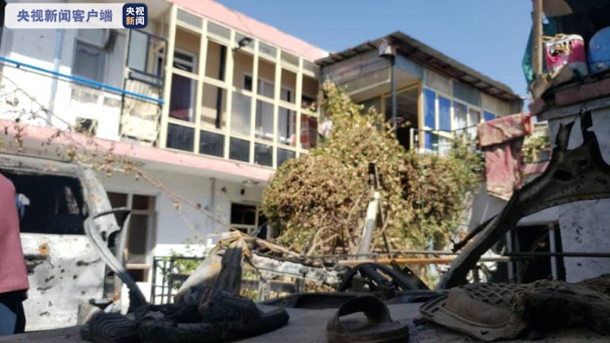 中央廣播電視總臺(tái)駐喀布爾報(bào)道員當(dāng)?shù)貢r(shí)間9月18日上午再次來(lái)到遇襲的民居回訪。院門(mén)沒(méi)有上鎖,里面空無(wú)一人。盡管時(shí)隔二十天,現(xiàn)場(chǎng)爆炸留下的痕跡依然清晰可見(jiàn),與之前來(lái)采訪的時(shí)候并沒(méi)有太大區(qū)別。被炸毀的車(chē)輛還停在院中,地上則雜亂地堆放著尚未清理的物品,幾只被火燒過(guò)的兒童拖鞋格外引人注目。