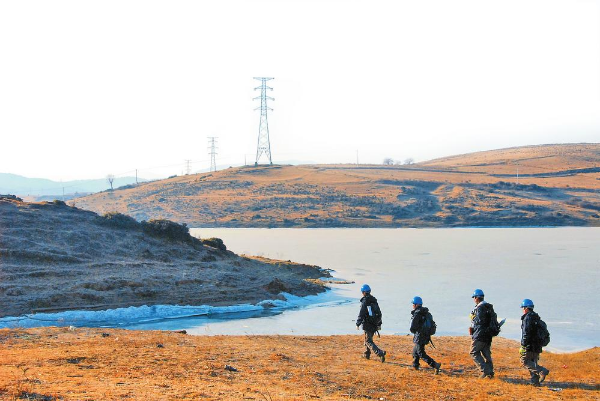 南方電網員工巡線哈巴雪山。