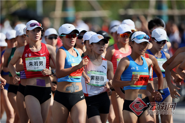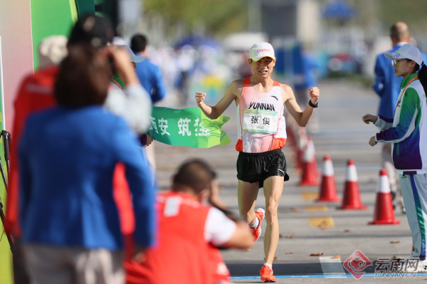 上午8時(shí),比賽正式打響,云南競(jìng)走隊(duì)派出了蔡澤林、崔利宏、杜玉成、牛文超、尹加星、張家旭、張俊幾員大將強(qiáng)勢(shì)出擊,廣東選手王凱華、山東選手邊通達(dá)、四川選手孫帥等人也不甘示弱且來(lái)勢(shì)洶洶。但比賽局面并沒(méi)有如大家賽前想象的那樣陷入膠著的局面,經(jīng)過(guò)幾輪試探后,張俊在9公里左右率先加速,將王凱華、孫帥甩在身后。此后張俊狀態(tài)越走越好,每公里的速度都比對(duì)手快2至5秒,領(lǐng)先的優(yōu)勢(shì)逐漸拉大,輕松地以1小時(shí)20分12秒昂首收獲冠軍。王凱華以1小時(shí)20分54秒獲得銀牌,走出1小時(shí)20分56秒的孫帥獲得銅牌,云南保山運(yùn)動(dòng)員張家旭也收獲了第7名的好成績(jī)。