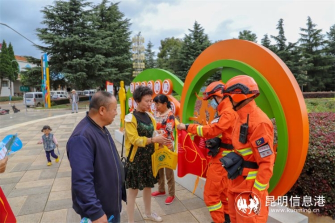 特勤大隊(duì)指戰(zhàn)員忙碌的身影穿梭在人群中,一會(huì)和老人親切握手,一會(huì)和小朋友有說有笑,好不熱鬧。駐地新招錄消防員鄧耀正用“家鄉(xiāng)話”和幾名年邁老人進(jìn)行林內(nèi)用火常識(shí)科普。在專門的宣傳點(diǎn),每當(dāng)群眾駐足詢問關(guān)于森林防火的問題時(shí),森林防火宣傳隊(duì)員都耐心一一回答。