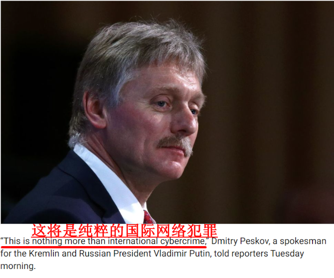 佩斯科夫:“這是令人擔憂的信息,美國媒體公布美國對俄方可能的網絡攻擊,這將是純粹的國際網絡犯罪。”