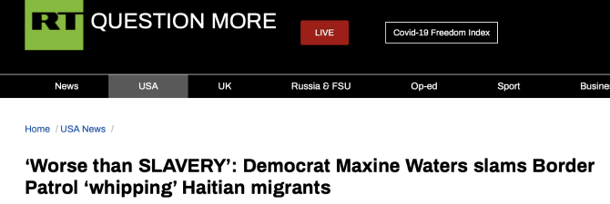 據(jù)“今日俄羅斯”(RT)報道,沃特斯22日在美國國會大廈外的一次集會上發(fā)表講話,要求為14000多名非法越過美墨邊境的海地人提供庇護(hù)。