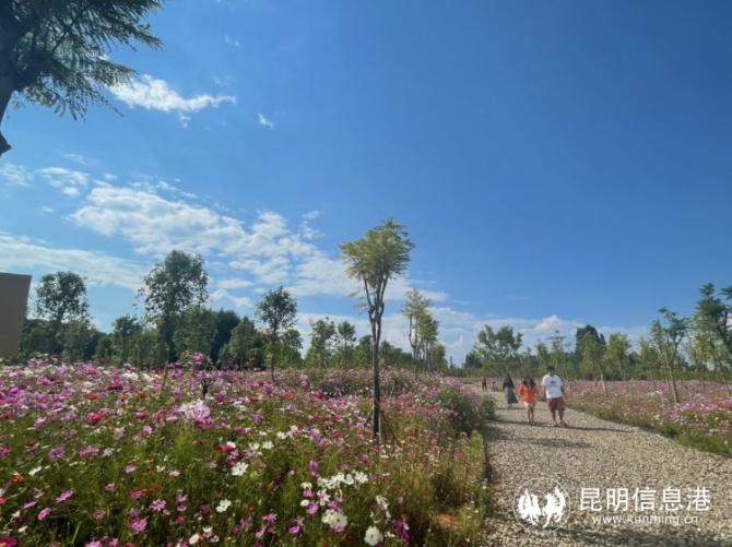 格?;?,在西藏又稱為幸福之花。這片花海位于洛龍河入滇口的和諧公園內(nèi),與煙波浩渺的滇池僅隔50米。放眼望去,粉色、白色、玫紅的格?;ㄔ谒{(lán)天下?lián)u曳,帶給人無(wú)盡的浪漫和美好。你可以穿上美美的裙子,摁下快門“咔擦”一聲驚艷朋友圈。