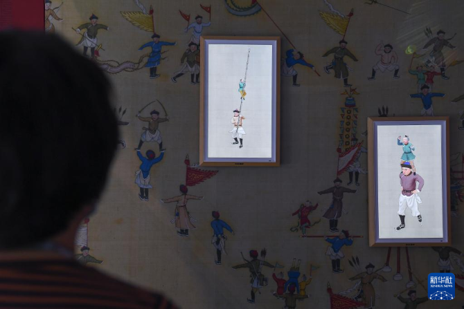 9月23日,觀眾在第十七屆文博會故宮博物院展臺欣賞數(shù)字化《冰嬉圖》局部。新華社記者 毛思倩 攝
