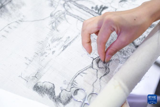 9月23日,參展者在第十七屆文博會場館江西展臺展示非遺夏布繡。新華社記者 毛思倩 攝