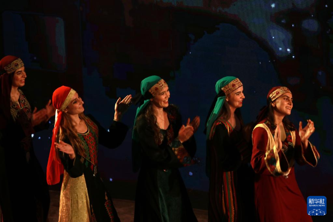 9月22日,演員在約旦杰拉什文化藝術節(jié)開幕式上表演。新華社發(fā)(穆罕默德·阿布·古什攝)