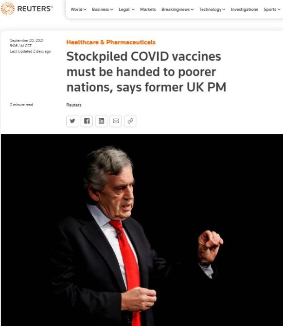世衛(wèi)組織新任衛(wèi)生籌資大使、英國(guó)前首相戈登·布朗指責(zé)說(shuō),“富國(guó)將扔掉1億劑疫苗,而世界上最貧窮國(guó)家的人們將為我們的疫苗浪費(fèi)付出生命的代價(jià),這是不可想象和不合情理的”。