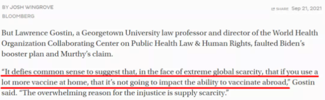 彭博社更是在報(bào)道中指出,美國(guó)政府的加強(qiáng)針政策可能會(huì)給其他富裕國(guó)家做出政治示范,迫使它們也制定自己的加強(qiáng)針計(jì)劃,從而進(jìn)一步加劇全球疫苗分配不平等。
