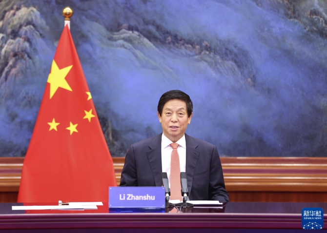 9月23日,全國(guó)人大常委會(huì)委員長(zhǎng)栗戰(zhàn)書在北京人民大會(huì)堂以視頻方式同文萊立法會(huì)議長(zhǎng)拉赫曼舉行會(huì)談。新華社記者 龐興雷 攝
