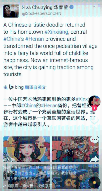 還獲得了華春瑩點贊
