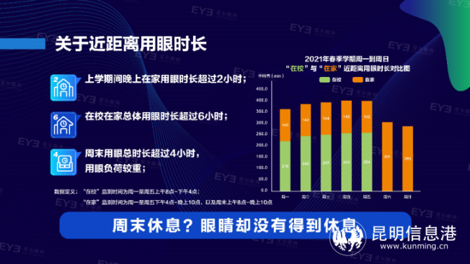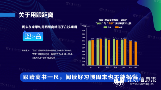 昆明信息港訊 2021年9月是全國第3個(gè)近視防控宣傳教育月。為更好地做好青少年近視防控工作,近日,愛爾眼視光研究所聯(lián)合中南大學(xué)愛爾眼科學(xué)院共同發(fā)布《2021年全國兒童青少年在校與在家用眼行為及視覺環(huán)境報(bào)告》(以下簡(jiǎn)稱:《報(bào)告》)。