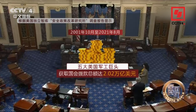 根據美國獨立智庫“安全政策改革研究所”前不久發(fā)布的調查報告顯示,2001年10月至2021年8月,五大美國軍工巨頭獲取的國會撥款總額達2.02萬億美元。