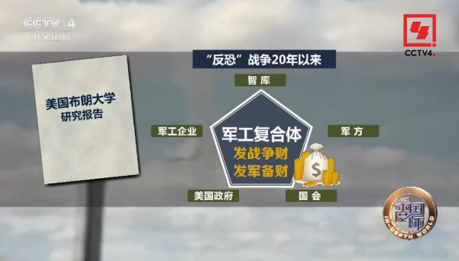 美國布朗大學研究報告發(fā)現(xiàn),“反恐”戰(zhàn)爭20年以來,美國軍工企業(yè)和美國政府、國會、軍方、智庫等各方出于共同利益,日益形成捆綁緊密且勢力龐大的軍工產業(yè)利益集團——“軍工復合體”,其特點就是發(fā)戰(zhàn)爭財、發(fā)軍備財。