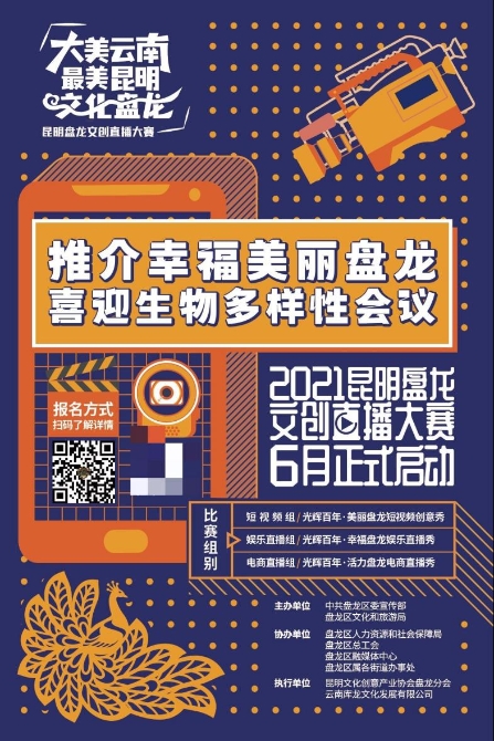 大賽緊緊圍繞“大美云南,最美昆明,文化盤龍”這個(gè)主題,分成三大組別,分別為:光輝百年·美麗盤龍短視頻創(chuàng)作競(jìng)賽、光輝百年·幸福盤龍綜藝活動(dòng)競(jìng)賽、光輝百年·活力盤龍電商直播競(jìng)賽。通過(guò)短視頻創(chuàng)作、網(wǎng)絡(luò)直播、等競(jìng)賽形式,結(jié)合建黨100周年、生物多樣性、民族文化多樣性等話題,從盤龍區(qū)生活環(huán)境、文旅資源、扶貧產(chǎn)品、文創(chuàng)作品等方面,展示盤龍區(qū)豐富的文旅資源、文創(chuàng)產(chǎn)品、城市活力、行業(yè)新貌。