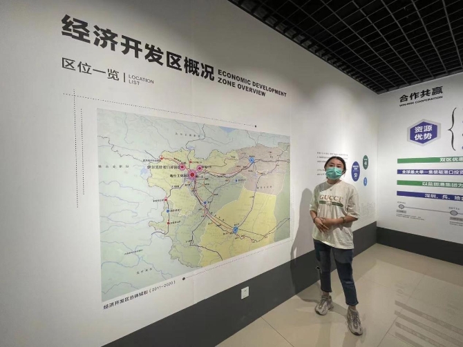 工作人員講解喀什經(jīng)濟(jì)開發(fā)區(qū)概況。人民網(wǎng)記者 何旭攝。