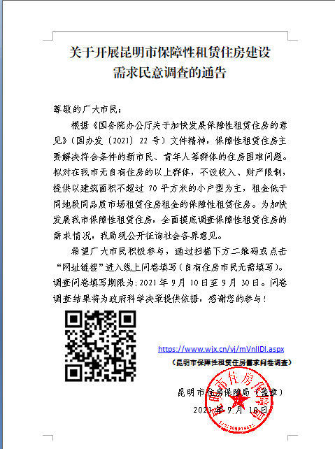 昆明信息港訊 記者上官艷君 9月初,昆明市住房保障局下發(fā)了《關(guān)于開展昆明市保障性租賃住房需求調(diào)查的通告》(以下簡(jiǎn)稱“通告”),正式啟動(dòng)昆明市保障性租賃住房需求摸底調(diào)查工作,至今已收到上萬(wàn)份問卷反饋。