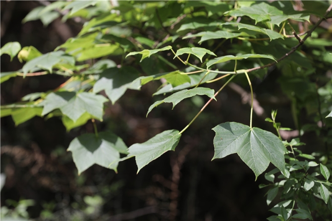 漾濞槭葉片外形酷似梧桐葉,背面還分布有白色的小絨毛。