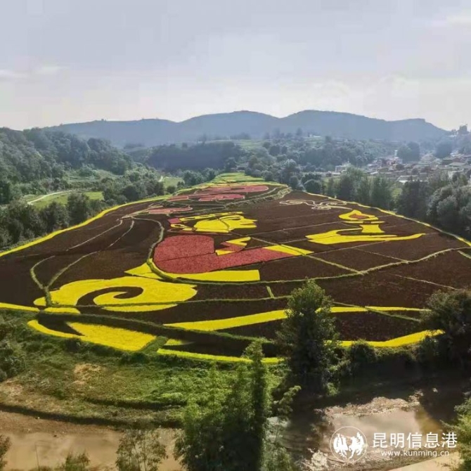 近年來,宜良縣掀起了以打造彩色水稻景觀為主要內(nèi)容的創(chuàng)意農(nóng)業(yè)熱潮。在距離宜良阿魯龍?zhí)飯@綜合體20余公里處,耿家營彝族苗族鄉(xiāng)藏方村委會的河灣村同樣憑借豐富多彩的“稻田畫”成了聞名遐邇的“網(wǎng)紅打卡點”。