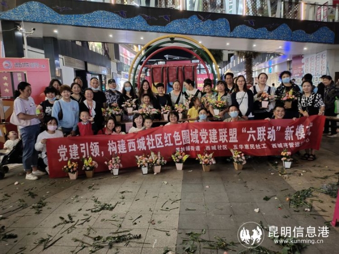 昆明信息港訊 記者昝娟娟 為慶祝新中國建立七十二周年華誕,豐富社區(qū)居民精神文化生活,9月29日,西城社區(qū)黨委聯(lián)合昆明立德物業(yè)、五華區(qū)惠民社會工作服務(wù)中心,在西城時代商業(yè)廣場開展“紅色圈域黨建聯(lián)盟‘六聯(lián)動’”花語迎國慶主題活動。
