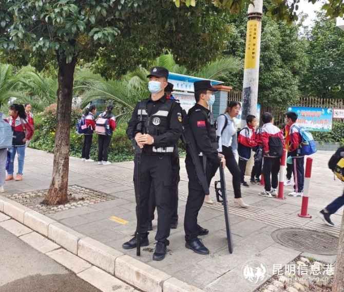 嵩明警方安排警力對進校人員進行嚴(yán)格把守,杜絕“四類人員”進校,積極指導(dǎo)督促學(xué)校落實疫情防控、安全制度、內(nèi)部保衛(wèi)、人員登記等工作;強化顯性用警,嚴(yán)格落實“警校家”、“高峰勤務(wù)”工作機制要求,切實提高校園周邊見警率和管事率,確保復(fù)課第一天校園及周邊秩序平穩(wěn)。