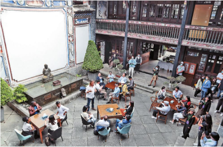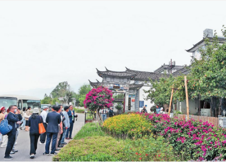 與會嘉賓在喜洲鎮(zhèn)喜林苑參觀