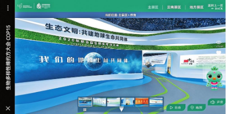 此次展覽從2021年10月10日持續(xù)至2022年上半年,通過(guò)線上方式面向全球展出,全球公眾可通過(guò)PC端(網(wǎng)址:https://chinapavilion.cop15-china.com.cn)和手機(jī)端二維碼參觀線上展覽。線上展分主展區(qū)、地方展區(qū)和云南展區(qū),主展區(qū)可通過(guò)手動(dòng)漫游和自動(dòng)漫游模式瀏覽展館全貌,云南展區(qū)可通過(guò)語(yǔ)音導(dǎo)覽自動(dòng)逛展,還可點(diǎn)擊吉祥物參與生物多樣性趣味答題;地方展區(qū)通過(guò)視頻、全景導(dǎo)覽、3D逛展等方式,全方位多角度展示了不同省份生物多樣性保護(hù)的特點(diǎn)和亮點(diǎn)。