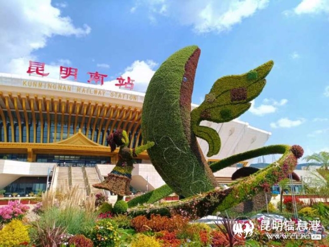 “開放昆明”花壇位于呈貢區(qū)昆明南站,主體選取昆明經(jīng)濟(jì)交通發(fā)展的地標(biāo)一昆明南站和長(zhǎng)水機(jī)場(chǎng)作為原型,提取軌道、高鐵、飛機(jī)的造型元素,向遠(yuǎn)道而來的客人展示昆明市經(jīng)濟(jì)文明發(fā)展的多樣性、新興科技的多樣性、人與生態(tài)和諧共存的多樣性,積極響應(yīng)創(chuàng)新、協(xié)調(diào)、綠色、開放、共享五大發(fā)展理念號(hào)召,預(yù)祝COP15大會(huì)圓滿成功。