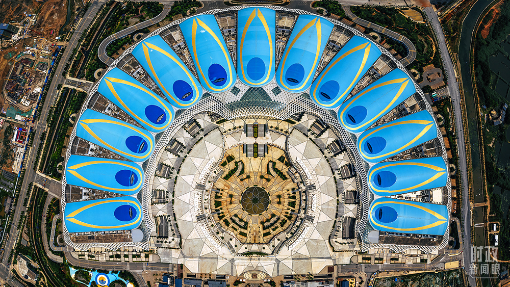 昆明滇池國際會展中心以“孔雀翎羽”為設(shè)計(jì)概念?!渡锒鄻有怨s》第十五次締約方大會就在這里舉行。(圖/視覺中國)
