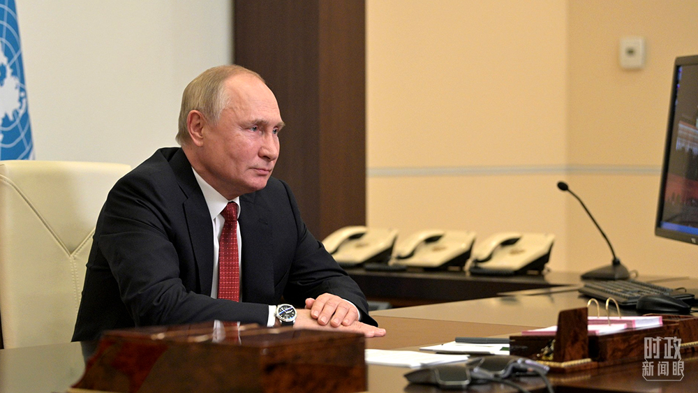俄羅斯總統(tǒng)普京、法國總統(tǒng)馬克龍通過視頻方式致辭。