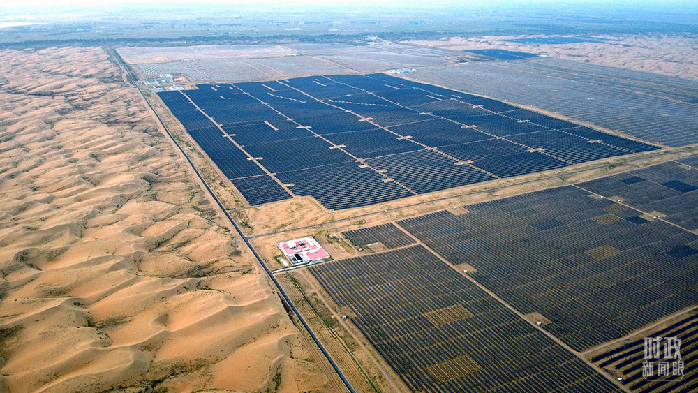 內(nèi)蒙古鄂爾多斯,達(dá)拉特旗光伏發(fā)電領(lǐng)跑獎(jiǎng)勵(lì)基地,是全球最大的沙漠集中式光伏電站。(圖/視覺中國)