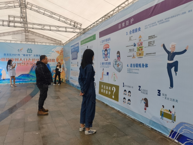 昆明信息港訊 秋風(fēng)送爽,丹桂飄香。10月14日,在重陽(yáng)節(jié)到來(lái)之際,盤(pán)龍區(qū)2021 年“敬老節(jié)”主題宣傳展在昆明同德廣場(chǎng)舉行。