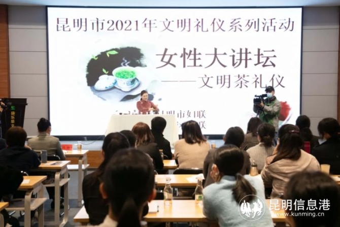 昆明信息港訊 記者李紅鸞 10月20日上午,由昆明市婦聯(lián)主辦、官渡區(qū)婦聯(lián)承辦的“女性大講壇”——茶禮儀專題講座在云南康樂茶文化城舉行。此次“女性大講壇”專題講座是昆明市2021年文明禮儀系列活動之一,以“茶禮儀”為主題,通過對茶文化、茶禮儀的學(xué)習(xí),提升婦女姐妹的文化素養(yǎng),營造文明和諧的社會氛圍。