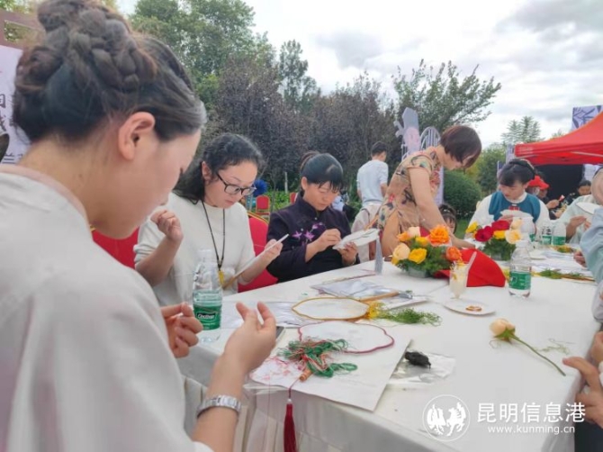 10月20日,2021年嵩明縣“蘭茂文化”城市品牌推介活動的現(xiàn)場組織安排了10組“非遺”項目展示體驗。主舞臺上的發(fā)布流程結(jié)束之后,這里就成了現(xiàn)場嘉賓和市民關(guān)注的焦點和體驗的樂園。