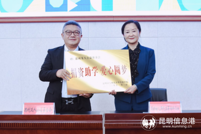昆明信息港訊 記者羅婉寧 11月1日,昆明幼兒師范高等??茖W(xué)校“思利及人助學(xué)圓夢(mèng)班”簽約暨開班儀式在校舉行。無限極(中國)有限公司通過思利及人公益基金會(huì)向?qū)W校捐資50萬元,資助學(xué)校2021級(jí)大專50名貧困家庭學(xué)生完成學(xué)業(yè)。