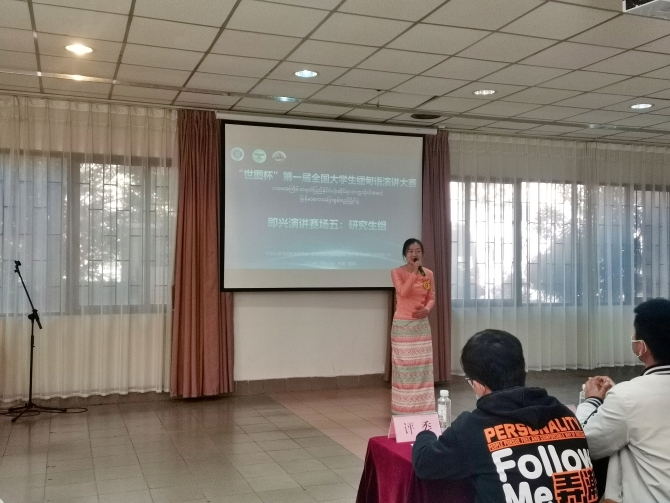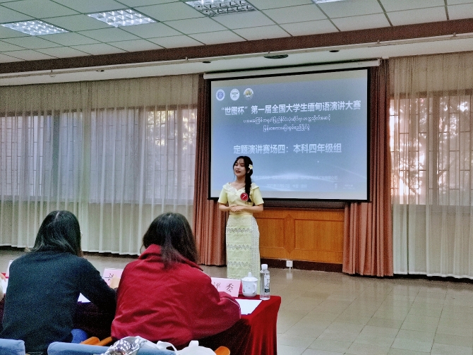 據(jù)悉, 本次比賽共分為專科二年級組、專科三年級組、本科二年級組、本科三年級組、本科四年級組及研究生組六個組別,比賽形式分為定題演講和即興演講兩個部分,定題演講分別圍繞“我所了解的緬甸”“中緬友誼”“奮斗百年路 啟航新征程”等多個主題展開。