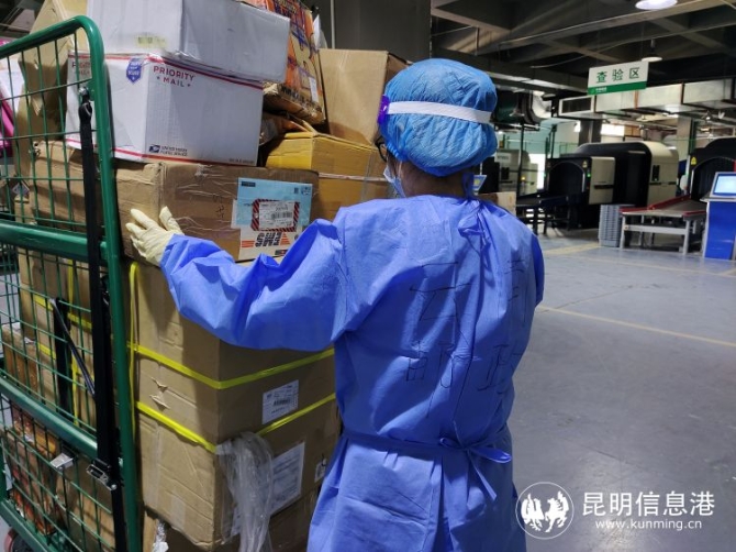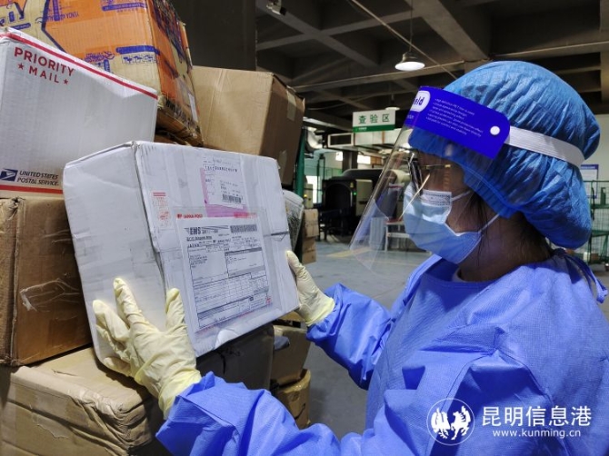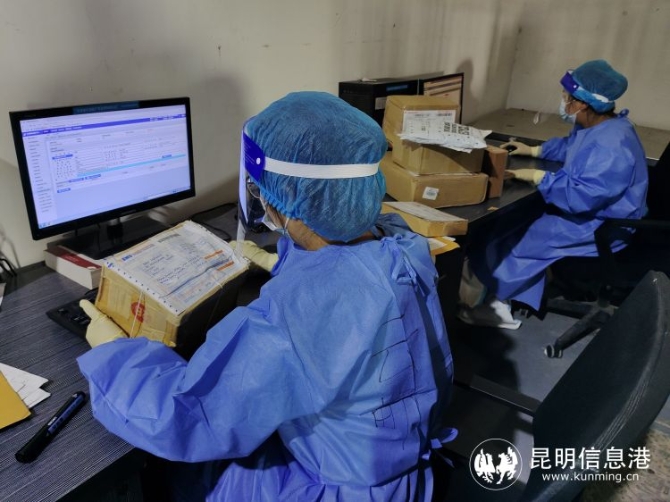 為確保郵件安全,云南郵政在處理中心嚴格執(zhí)行封閉管理、進出檢查制度,加強重點環(huán)節(jié)防控,對高、中風險地區(qū)的車輛,執(zhí)行單獨區(qū)域停放,先消毒后處理; 對于高、中風險地區(qū)進口郵件,做好單獨堆放、消殺,專人、單獨處理。同時,為攬投人員配備醫(yī)用口罩、護目鏡、手套、防護服等防疫用品,按照要求規(guī)范操作。