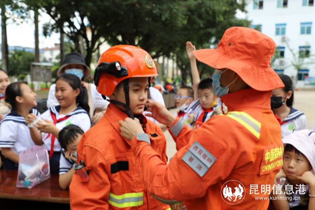 活動(dòng)中,消防員向師生們講解了森林火災(zāi)的特點(diǎn)、危害及地質(zhì)災(zāi)害避險(xiǎn)常識(shí),用通俗易懂的語言教會(huì)他們消防安全知識(shí)和逃生技能,并教授他們?nèi)绾尾僮魇褂脺缁鹌鳌M瑢W(xué)們饒有興致地穿戴上消防救援服、撫摸著滅火救援器材,當(dāng)起了“小小消防員”。師生還體驗(yàn)了消防指戰(zhàn)員的日常生活,消防員手把手的同學(xué)疊“豆腐塊”被子的方法步驟和技巧。訓(xùn)練場(chǎng)上,指戰(zhàn)員為師生表演了斜向救援、200米滅火障礙訓(xùn)練。為表達(dá)感謝之情,同學(xué)們?yōu)榇箨?duì)指戰(zhàn)員獻(xiàn)上了鮮花和《致消防員叔叔的一封信》,表演了拉丁舞、詩朗誦、集體舞蹈,為大隊(duì)指戰(zhàn)員代表佩戴了紅領(lǐng)巾。