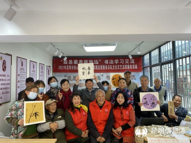 昆明信息港訊 記者甘凌菲 11月11日上午,由昆明市文聯(lián)、西山區(qū)文明辦、西山區(qū)新時(shí)代文明實(shí)踐志愿服務(wù)總隊(duì)、昆明市新時(shí)代文明實(shí)踐文化文藝志愿服務(wù)二大隊(duì)主辦的“最是墨香能致遠(yuǎn)”主題書法學(xué)習(xí)交流活動(dòng)在西山區(qū)棕樹營(yíng)街道社工站進(jìn)行。