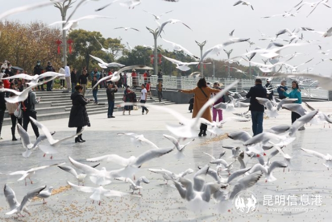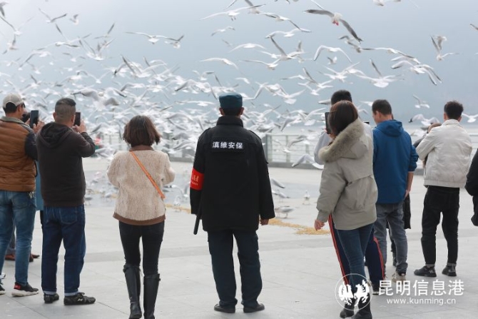 昆明信息港訊 記者楊雁 記者從云南滇維安保公司了解到,隨著紅嘴鷗大量從西伯利亞飛臨昆明,為倡導(dǎo)市民游客文明觀鷗,草海大壩每天配備了30-50名護(hù)鷗人員在大壩上巡邏,同時(shí)由政府提供鷗糧進(jìn)行定時(shí)定點(diǎn)投喂。呼吁昆明市民及廣大游客文明觀鷗,共同參與到愛鷗、護(hù)鷗,守護(hù)春城冬日這群小精靈的行列中來。