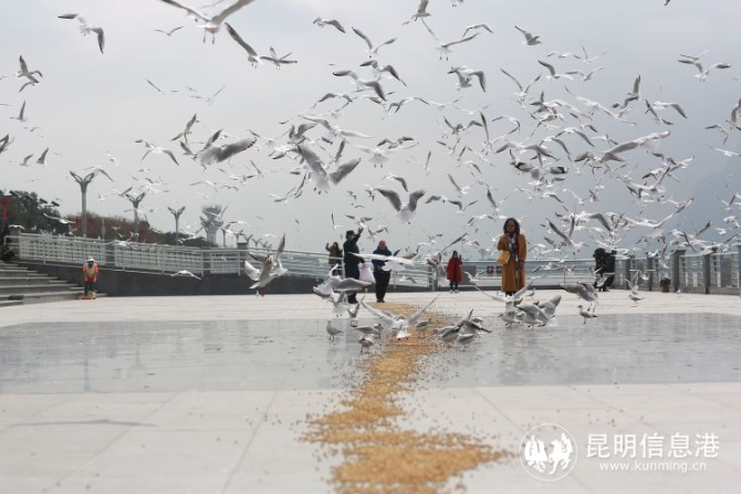 此外,為了讓遠(yuǎn)道而來的這群小精靈吃飽肚子,強(qiáng)健身體,除市民及游客前來投喂之外,滇維安保公司安排在大壩親水平臺(tái)和最佳觀鷗點(diǎn)進(jìn)行每天2次定時(shí)定點(diǎn)的鷗糧投喂。