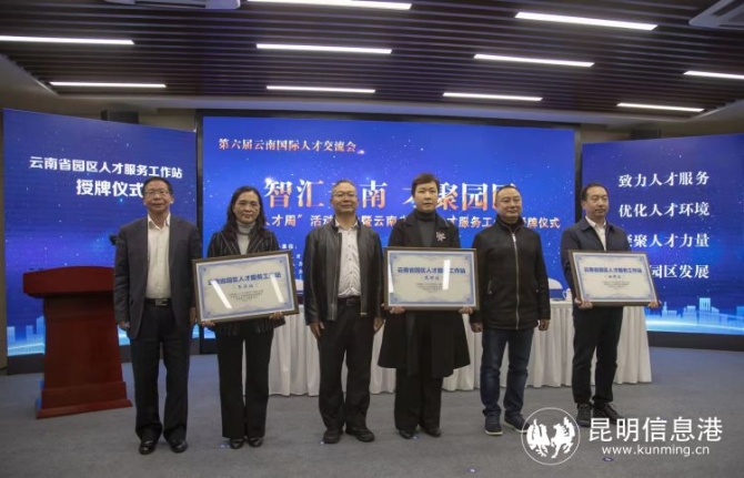 張金濤為昆明、曲靖、玉溪等州市園區(qū)人才服務(wù)工作站授牌。其余州(市)人力資源社會(huì)保障局、建站園區(qū),同步在線上參加授牌儀式。昆明市人社局在自貿(mào)區(qū)昆明片區(qū)(昆明經(jīng)開(kāi)區(qū))設(shè)立高層次人才服務(wù)窗口并授牌。