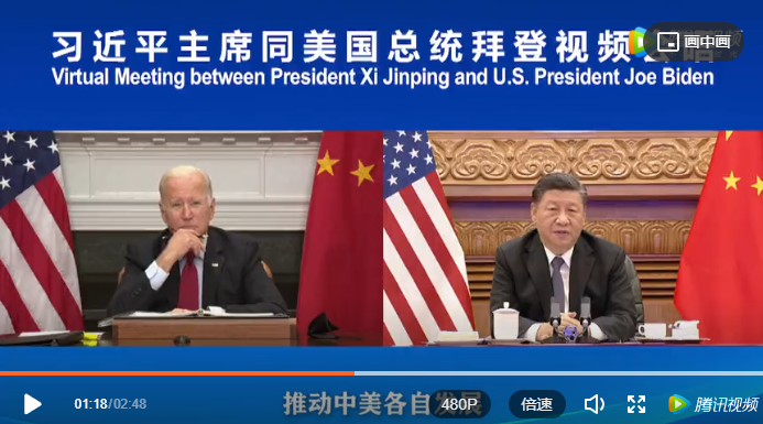 今年以來,習主席與拜登總統(tǒng)相隔7個月兩次通話,分別在今年2月和9月。這次的視頻會晤與上次通話相隔兩個月,時長持續(xù)3個半小時,超過原定時間。會晤結(jié)束,美國已是深夜。三次交流中,習主席強調(diào)最多的就是相互尊重、合作共贏。今天,習主席在開場就提出三組關(guān)鍵詞:相互尊重、和平共處、合作共贏,明確地指出了新時期中美的相處之道。習主席還把中美比作是兩艘在大海中航行的巨輪。這次會晤可以說是在關(guān)鍵時刻,對中美關(guān)系的一次把舵引航。