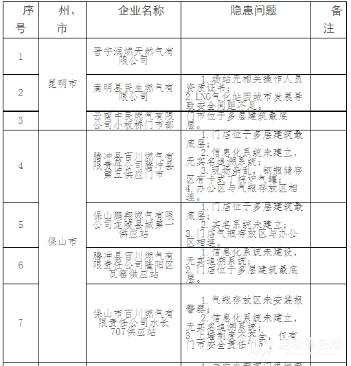 昆明信息港訊記者張水燕 11月17日,云南省住房和城鄉(xiāng)建設廳公布城鎮(zhèn)燃氣“雙隨機 一公開”聯(lián)合檢查工作結果稱,部分企業(yè)存在不同程度的安全隱患,門店設施不完善、企業(yè)相關記錄填寫缺失、安全間距不足、電控系統(tǒng)失效等問題突出。